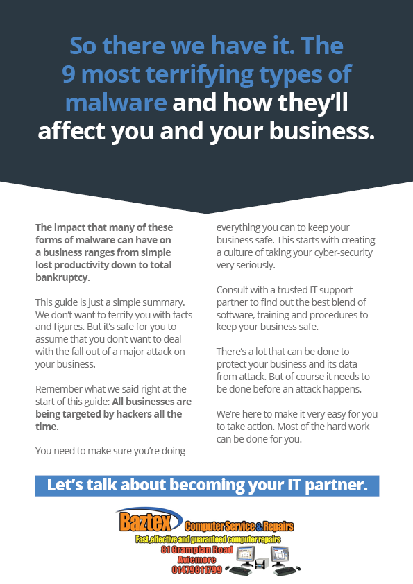 We’ve written a brand new guide to tell you about the nine most common types of malware. It’s been written so anyone can understand it.